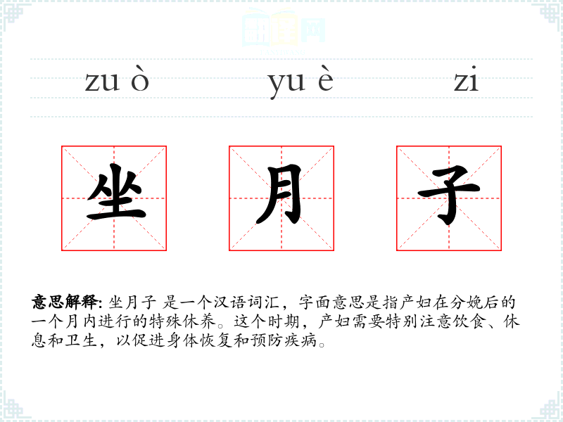 坐月子这一词汇不仅代表了产后护理的传统俗,也反映了文化和社会对生育和后代的重视。通过深入学和分析,我更加理解了这一词汇在语言和文化中的重要性,以及它在个人和社会生活中的深远影响。