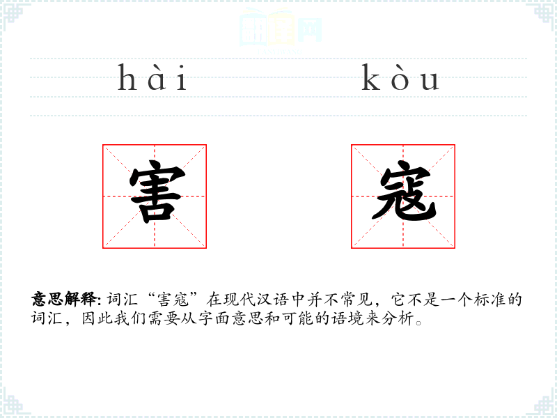 词汇“害寇”在现代汉语中并不常见,它不是一个标准的词汇,因此我们需要从字面意思和可能的语境来分析。