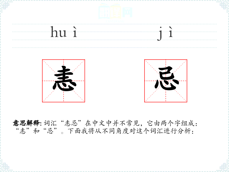 词汇“恚忌”在中文中并不常见,它由两个字组成:“恚”和“忌”。下面我将从不同角度对这个词汇进行分析: