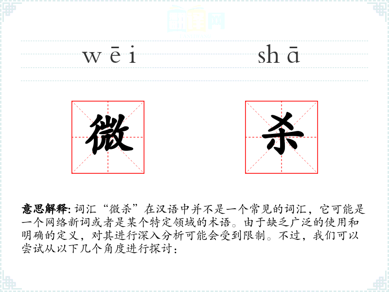 由于“微杀”不是一个传统词汇,它的词源和演变可能与网络语言的发展或特定领域的术语创造有关。