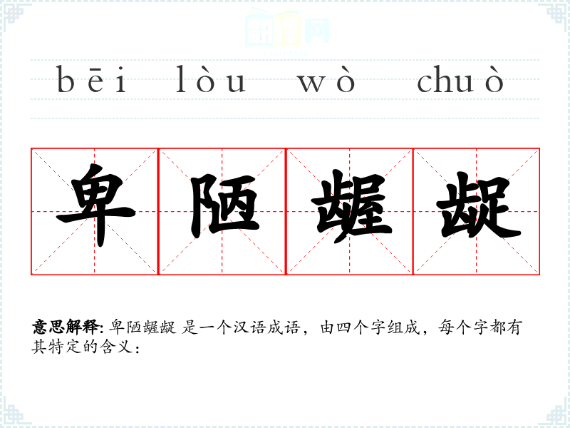 卑陋龌龊 是一个汉语成语,由四个字组成,每个字都有其特定的含义:
