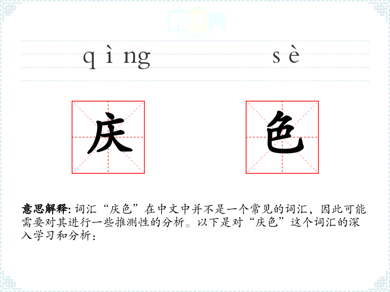 词汇“庆色”在中文中并不是一个常见的词汇,因此可能需要对其进行一些推测性的分析。以下是对“庆色”这个词汇的深入学*和分析: