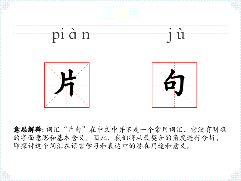 由于“片句”不是一个标准词汇,我们可以推测它可能是由“片”和“句”两个字组合而成,可能指的是简短的句子或片段。