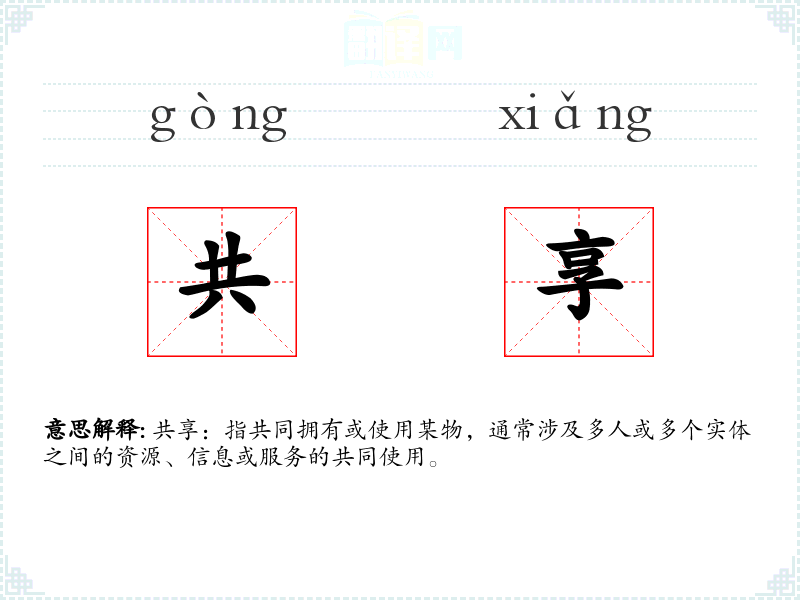 “共享”一词源自汉语,由“共”和“享”两个字组成。在古代汉语中,“共”意味着一起或共同,“享”则指享受或使用。随着社会的发展,“共享”逐渐被广泛应用于描述资源和信息的共同使用。