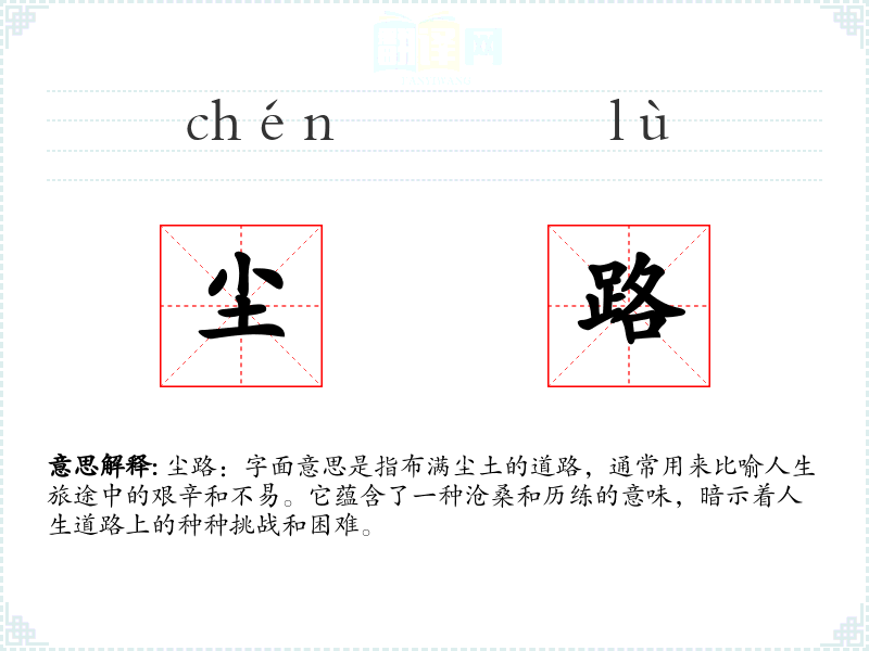 尘路:字面意思是指布满尘土的道路,通常用来比喻人生旅途中的艰辛和不易。它蕴含了一种沧桑和历练的意味,暗示着人生道路上的种种挑战和困难。