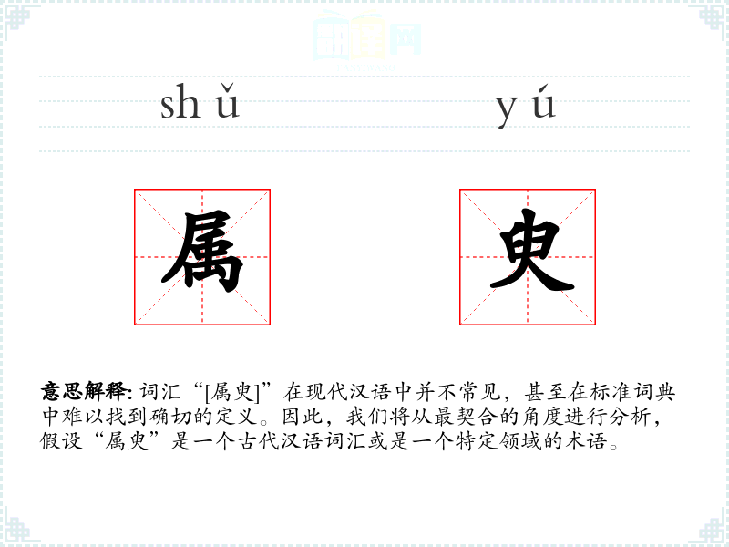词汇“[属臾]”在现代汉语中并不常见,甚至在标准词典中难以找到确切的定义。因此,我们将从最契合的角度进行分析,假设“属臾”是一个古代汉语词汇或是一个特定领域的术语。