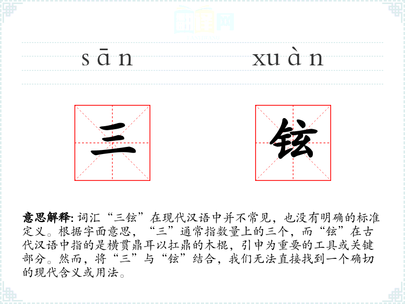 同义词与反义词方面,由于“三铉”不是一个常用词汇,我们无法直接找到与之相关的同义词或反义词。