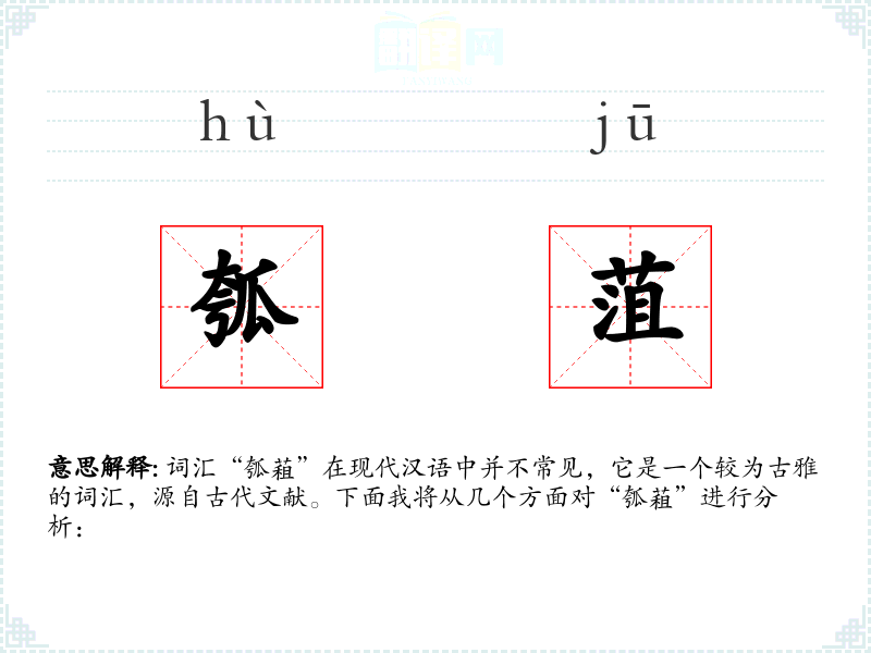 词汇“瓠蒩”在现代汉语中并不常见,它是一个较为古雅的词汇,源自古代文献。下面我将从几个方面对“瓠蒩”进行分析: