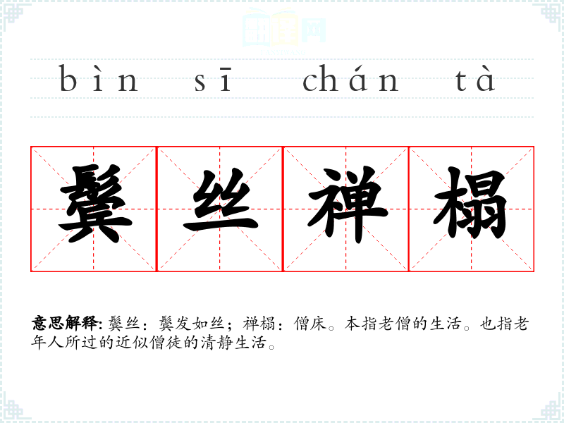 鬓丝:鬓发如丝;禅榻:僧床。本指老僧的生活。也指老年人所过的近似僧徒的清静生活。