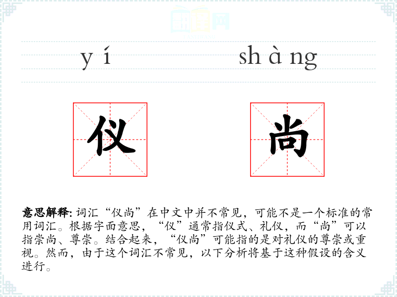 提到“仪尚”,可能会联想到庄重、传统和尊重,给人一种正式和严肃的感觉。