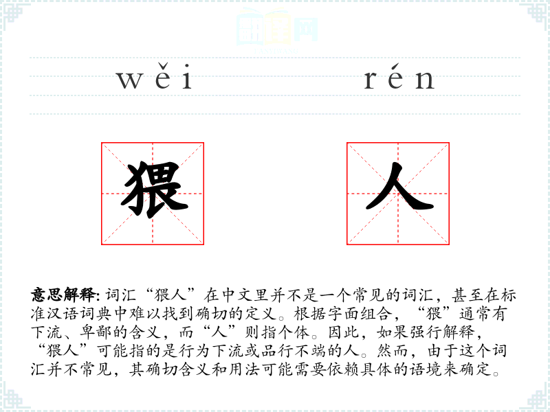 由于“猥人”不是一个常用词汇,它在不同的语境下可能会有不同的解释。在某些非正式或方言的语境中,它可能被用来形容某人的行为不端或不受欢迎。