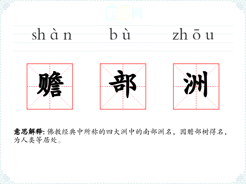 佛教经典中所称的四大洲中的南部洲名,因赡部树得名,为人类等居处。