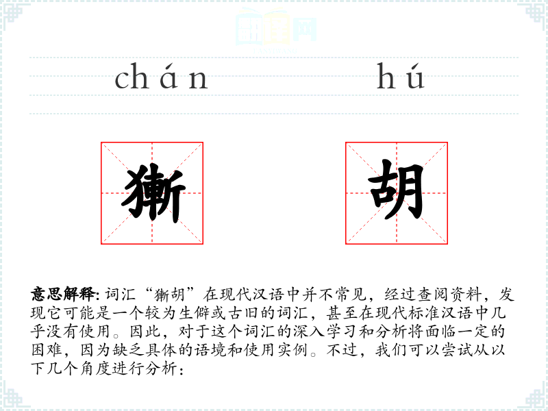 词汇“獑胡”在现代汉语中并不常见,经过查阅资料,发现它可能是一个较为生僻或古旧的词汇,甚至在现代标准汉语中几乎没有使用。因此,对于这个词汇的深入学习和分析将面临一定的困难,因为缺乏具体的语境和使用实例。不过,我们可以尝试从以下几个角度进行分析: