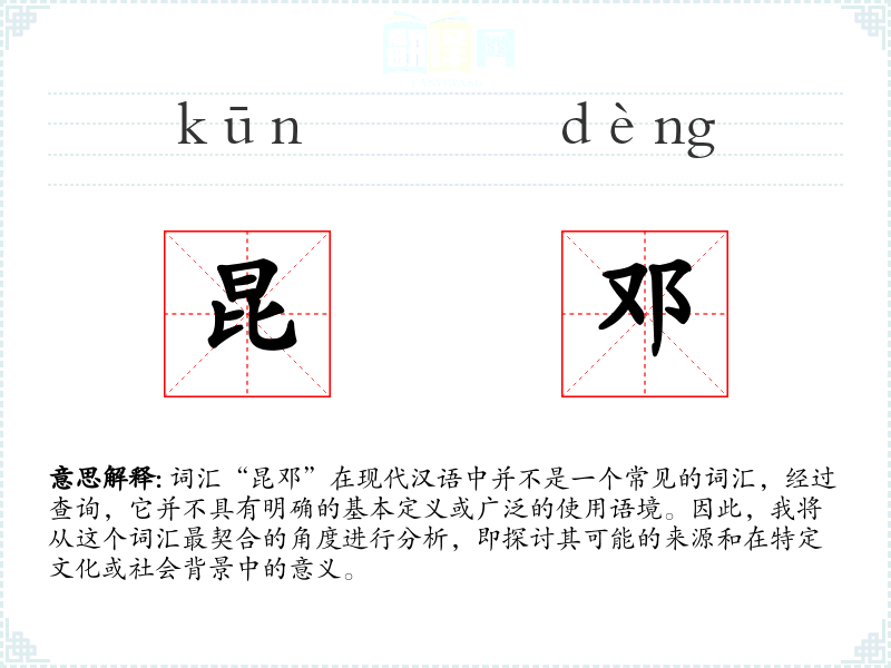 由于“昆邓”不是一个标准词汇,我们无法给出其字面意思和基本含义。