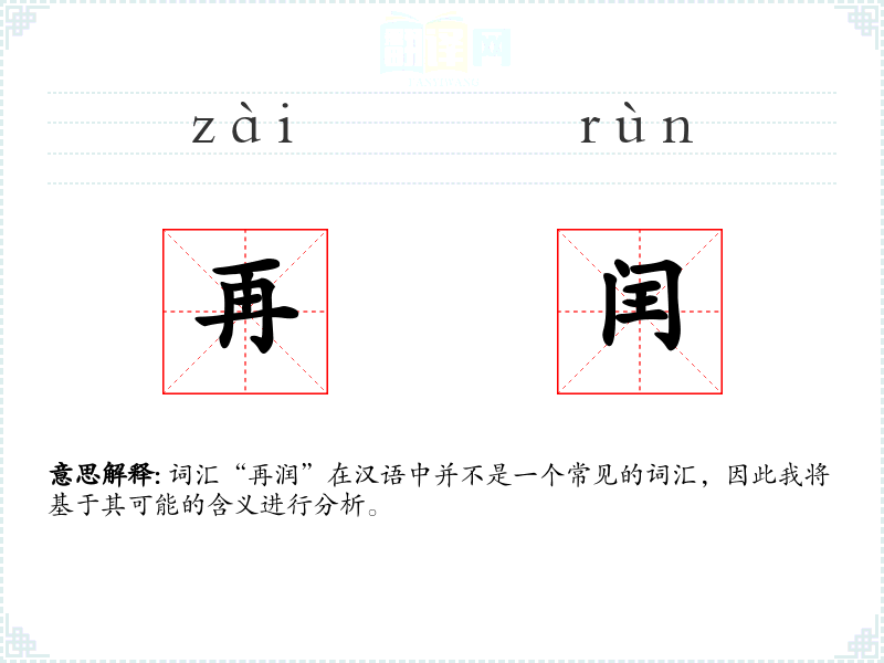词汇“再润”在汉语中并不是一个常见的词汇,因此我将基于其可能的含义进行分析。
