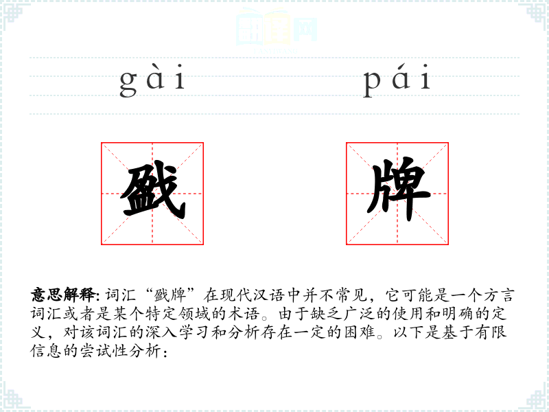 “戤牌”的字面意思和基本含义不明确,可能需要结合具体的方言或专业领域来解释。