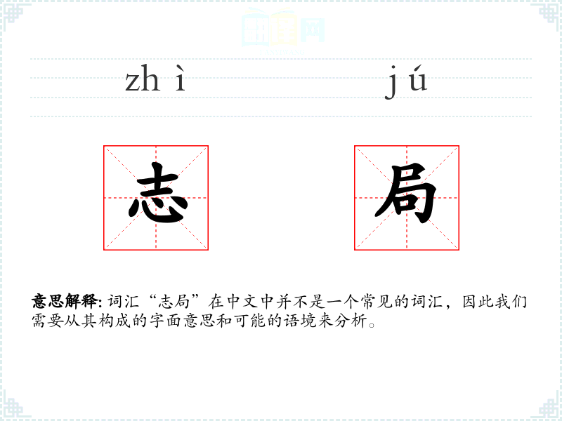 词汇“志局”在中文中并不是一个常见的词汇,因此我们需要从其构成的字面意思和可能的语境来分析。