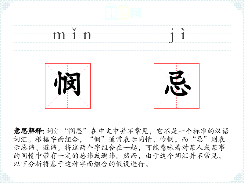 由于“悯忌”不是一个标准词汇,其在不同语言或文化中的对应词汇及其使用情况不详。