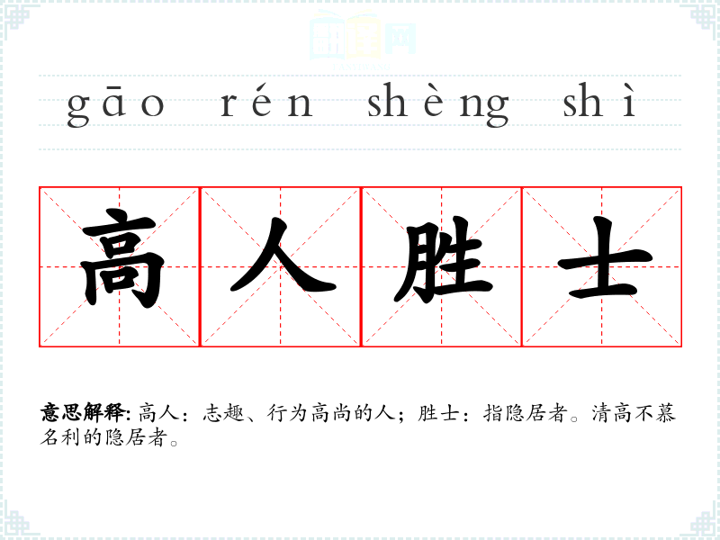 高人:志趣、行为高尚的人;胜士:指隐居者。清高不慕名利的隐居者。