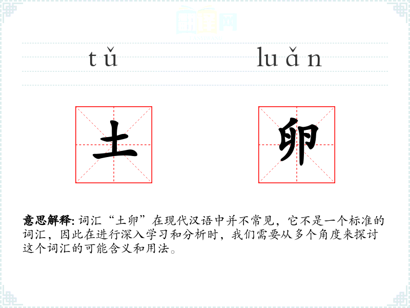 由于“土卵”不是一个标准词汇,对其的理解和分析非常有限。如果它是一个方言词汇,可能需要具体的方言语境来深入研究。在语言学习和表达中,了解和掌握标准词汇是非常重要的,而方言词汇则需要根据具体语境来学习和应用。