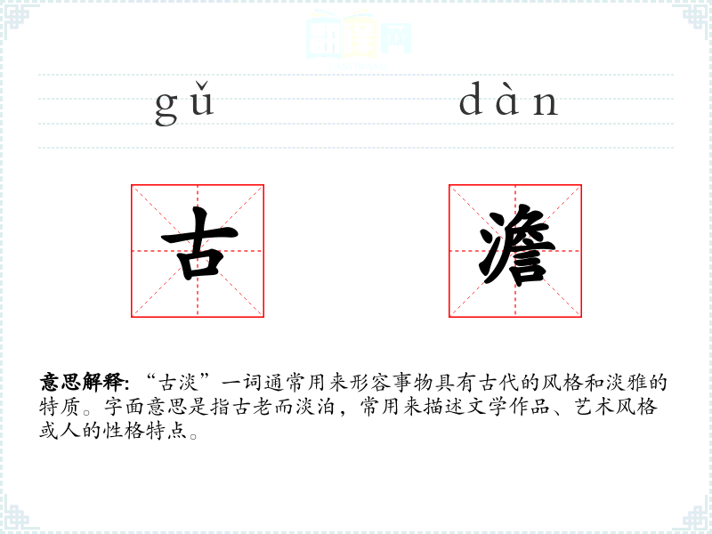 “古淡”一词通常用来形容事物具有古代的风格和淡雅的特质。字面意思是指古老而淡泊,常用来描述文学作品、艺术风格或人的性格特点。