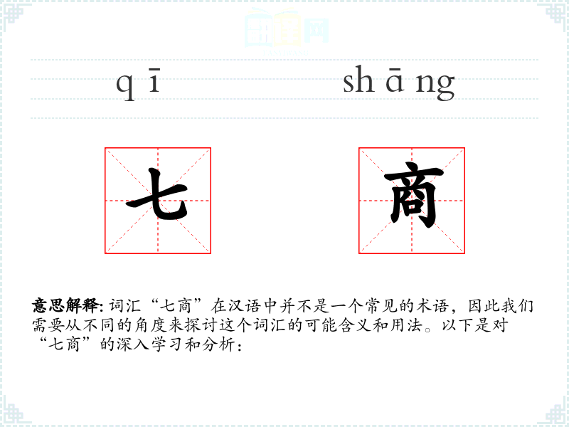 词汇“七商”在汉语中并不是一个常见的术语,因此我们需要从不同的角度来探讨这个词汇的可能含义和用法。以下是对“七商”的深入学习和分析: