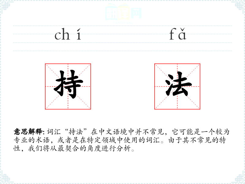 词汇“持法”在中文语境中并不常见,它可能是一个较为专业的术语,或者是在特定领域中使用的词汇。由于其不常见的特性,我们将从最契合的角度进行分析。