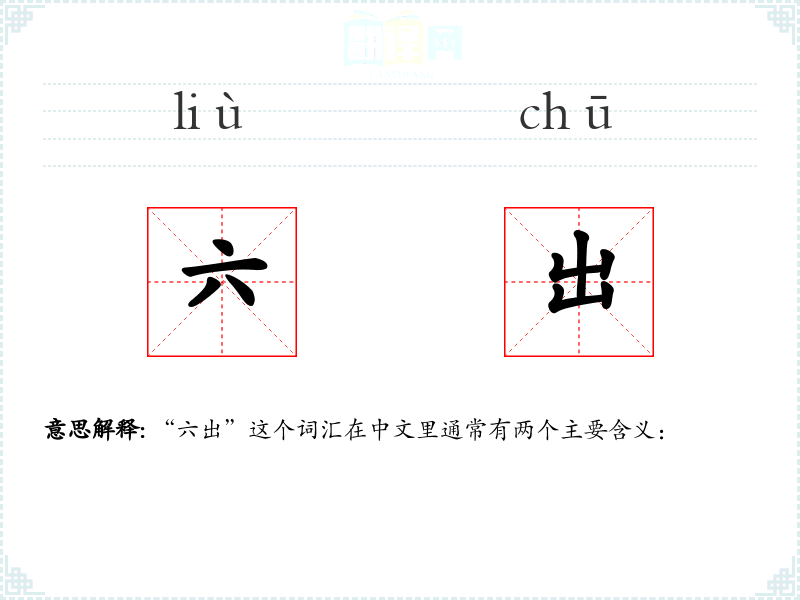 "六出"的意思解释、六出是什么意思由翻译网汉语词典查词提供。