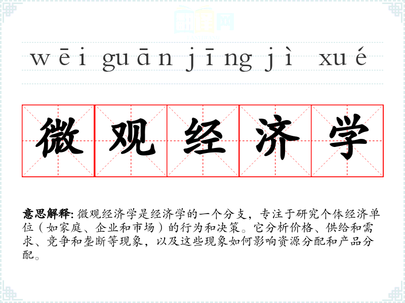 微观经济学是经济学的一个分支,专注于研究个体经济单位(如家庭、企业和市场)的行为和决策。它分析价格、供给和需求、竞争和垄断等现象,以及这些现象如何影响资源分配和产品分配。