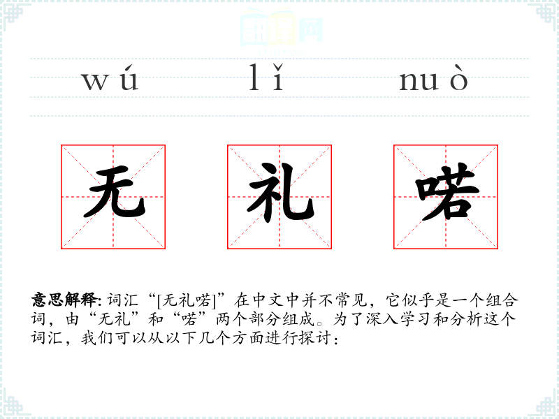 词汇“[无礼喏]”在中文中并不常见,它似乎是一个组合词,由“无礼”和“喏”两个部分组成。为了深入学习和分析这个词汇,我们可以从以下几个方面进行探讨: