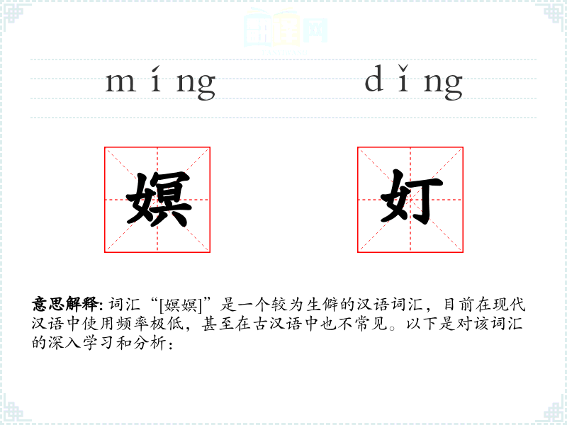 词汇“[嫇嫇]”是一个较为生僻的汉语词汇,目前在现代汉语中使用频率极低,甚至在古汉语中也不常见。以下是对该词汇的深入学*和分析: