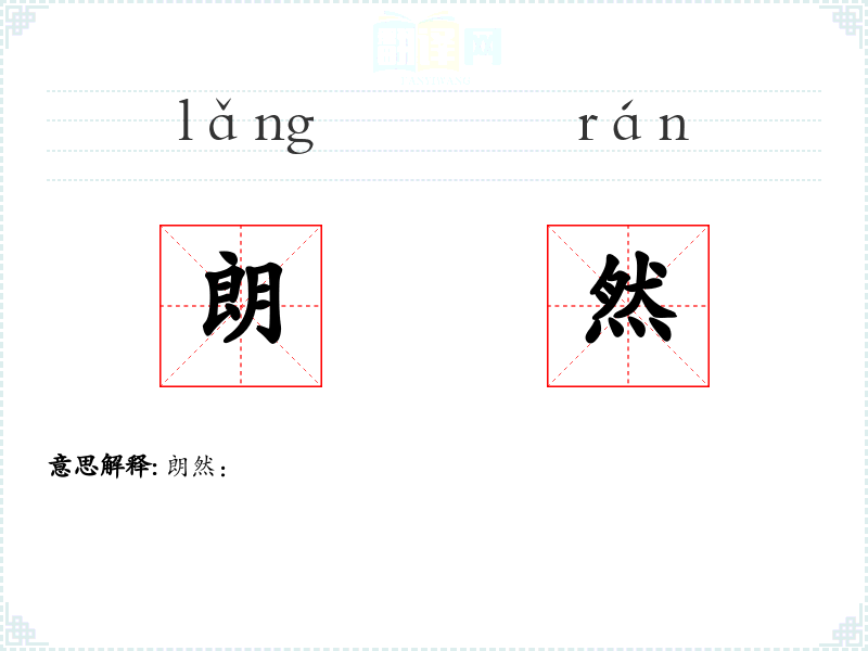 - 词源:“朗”字古已有之,意为明亮;“然”字作为后缀,表示状态或样子。