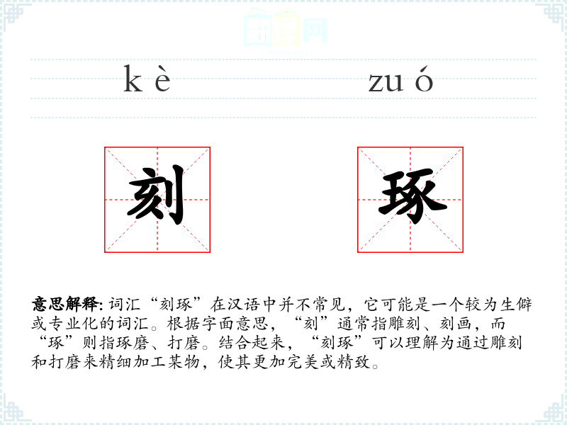 - 词源:“刻”和“琢”都是古代汉语中的词汇,分别指雕刻和打磨。