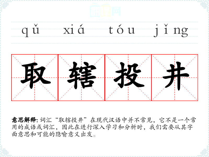 词汇“取辖投井”在现代汉语中并不常见,它不是一个常用的成语或词汇,因此在进行深入学*和分析时,我们需要从其字面意思和可能的隐喻意义出发。