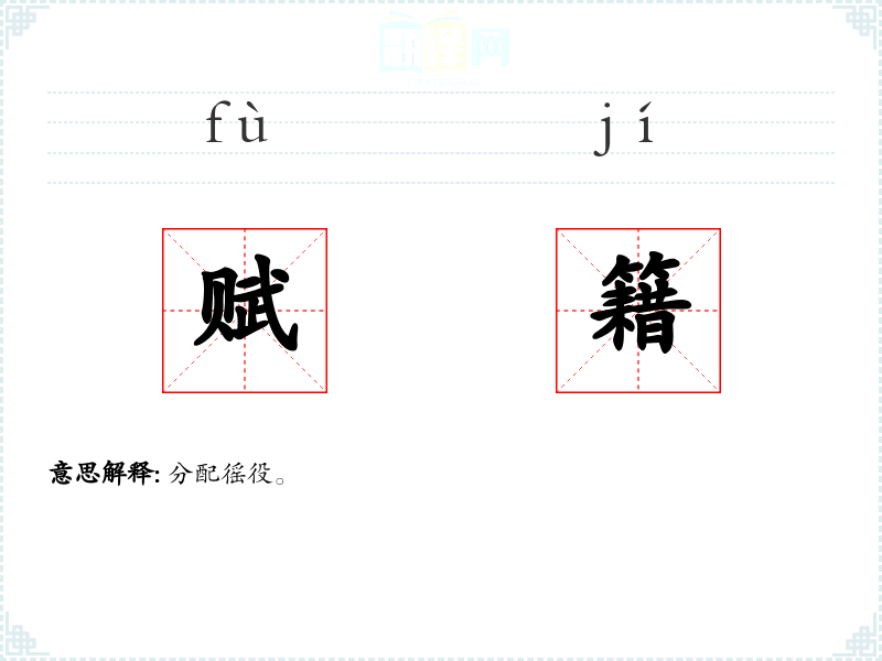 赋籍的分字解释