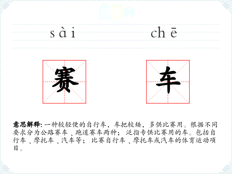赛车的分字解释
