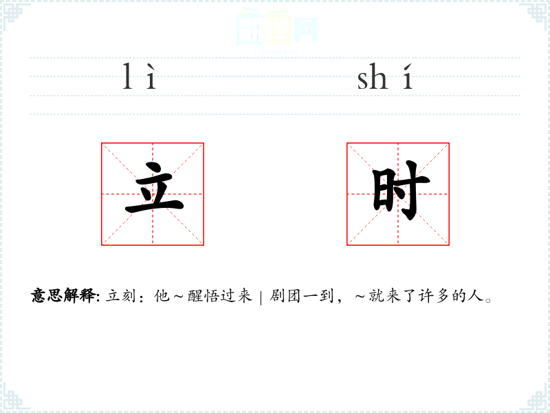 立刻:他~醒悟过来|剧团一到,~就来了许多的人。