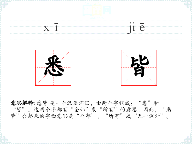 悉 和 皆 都是古汉语词汇,有着悠久的历史。悉 源自古代对“知晓”或“完全了解”的含义,后来扩展到“全部”的意思。皆 则一直有“全部”或“所有”的含义。在现代汉语中,这两个字组合使用,强调了“全部”的概念。