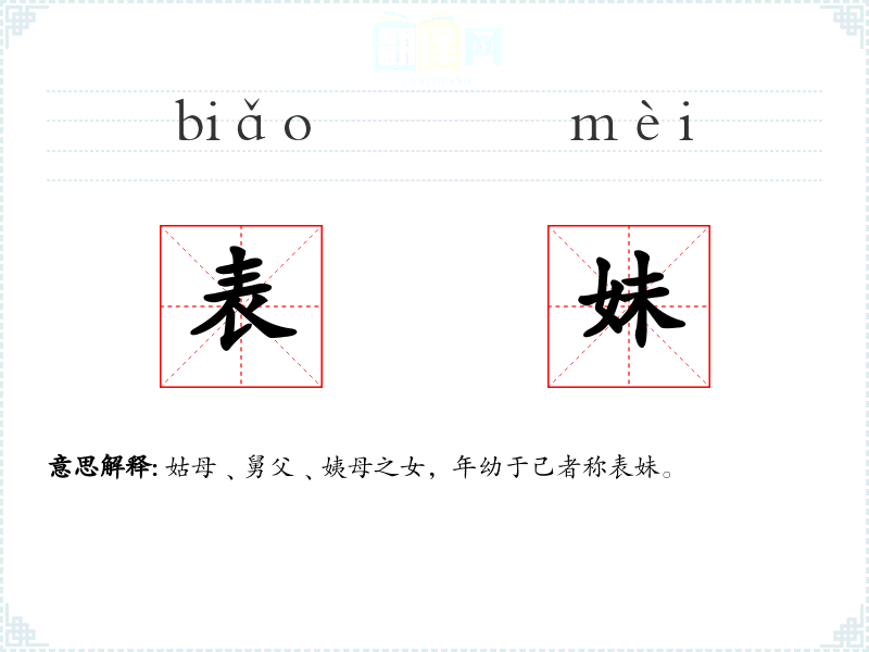 表妹的分字解释