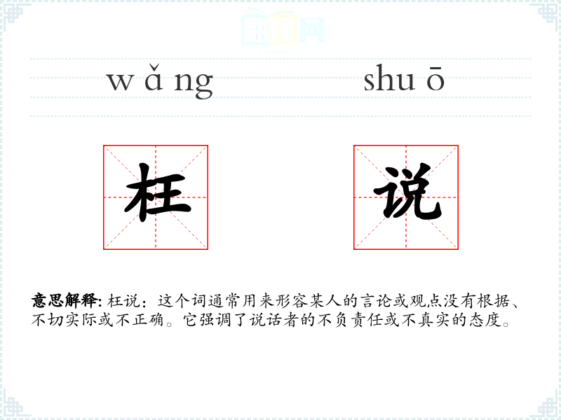 枉说:这个词通常用来形容某人的言论或观点没有根据、不切实际或不正确。它强调了说话者的不负责任或不真实的态度。