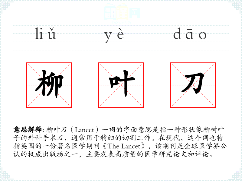 “柳叶刀”一词在医学领域具有重要意义,无论是作为外科工具还是权威期刊的名称。在我的语言学习和表达中,了解这个词的背景和用法,有助于我更准确地理解和使用相关医学术语。