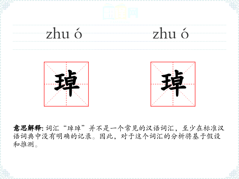 词汇“琸琸”并不是一个常见的汉语词汇,至少在标准汉语词典中没有明确的记录。因此,对于这个词汇的分析将基于假设和推测。