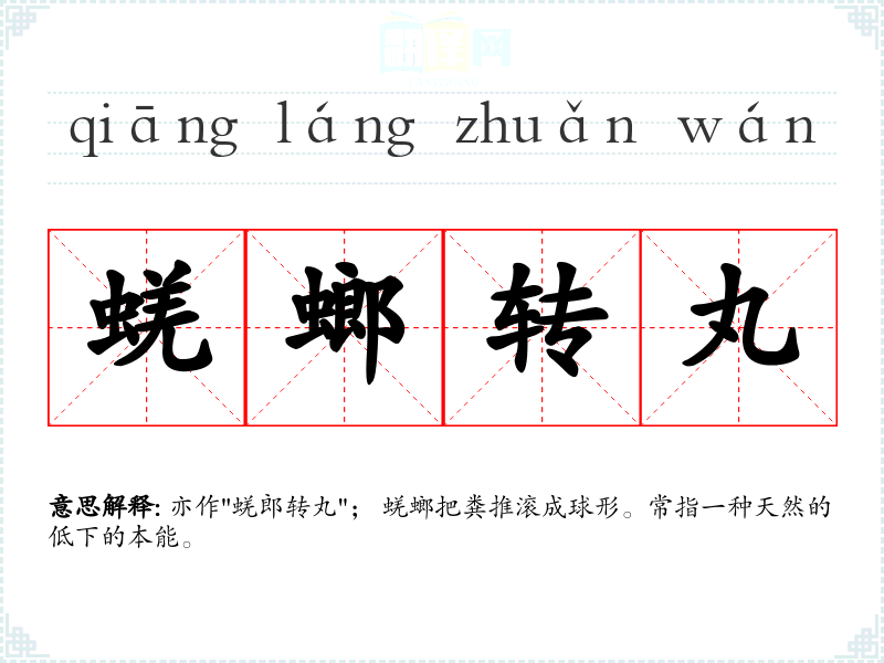 亦作"蜣郎转丸"; 蜣螂把粪推滚成球形。常指一种天然的低下的本能。