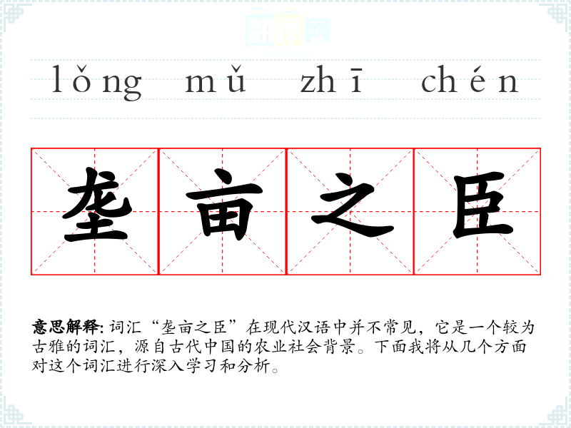 词汇“垄亩之臣”在现代汉语中并不常见,它是一个较为古雅的词汇,源自古代*的农业社会背景。下面我将从几个方面对这个词汇进行深入学和分析。