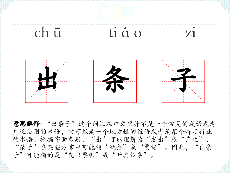 "出条子"的意思解释、出条子是什么意思由翻译网汉语词典查词提供。