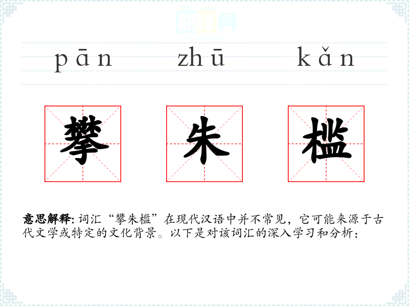 词汇“攀朱槛”在现代汉语中并不常见,它可能来源于古代文学或特定的文化背景。以下是对该词汇的深入学*和分析: