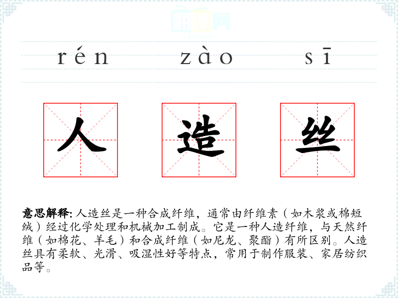 - 同义词:人造纤维、粘胶纤维、Rayon(英文中的对应词汇)