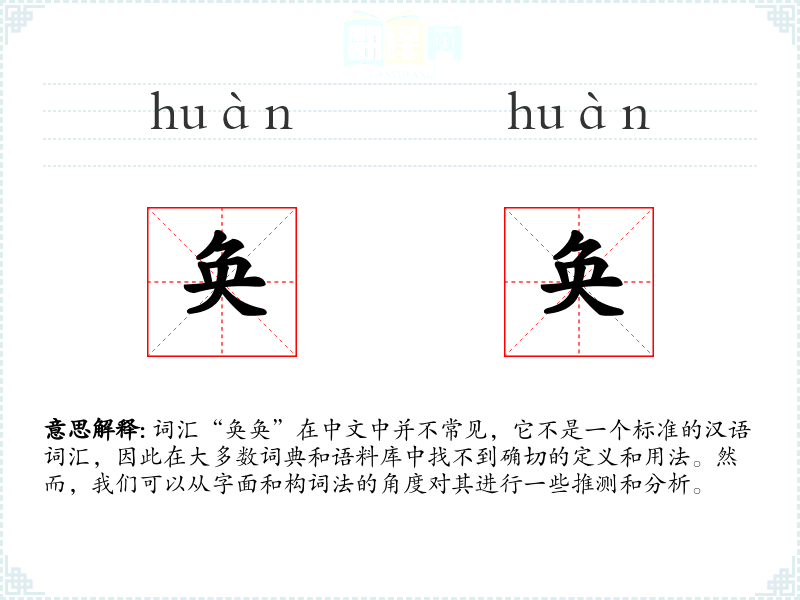 词汇“奂奂”在中文中并不常见,它不是一个标准的汉语词汇,因此在大多数词典和语料库中找不到确切的定义和用法。然而,我们可以从字面和构词法的角度对其进行一些推测和分析。