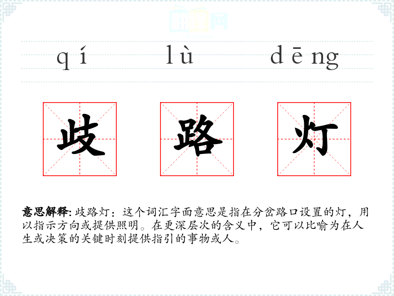 歧路灯:这个词汇字面意思是指在分岔路口设置的灯,用以指示方向或提供照明。在更深层次的含义中,它可以比喻为在人生或决策的关键时刻提供指引的事物或人。