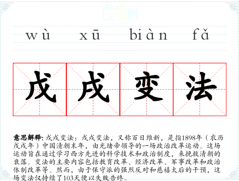 口语:在日常口语中,戊戌变法可能作为一个历史**被提及,用来说明历史上的改革尝试或失败的原因。